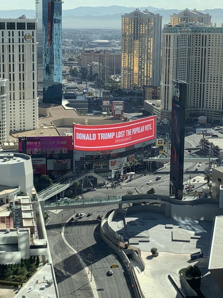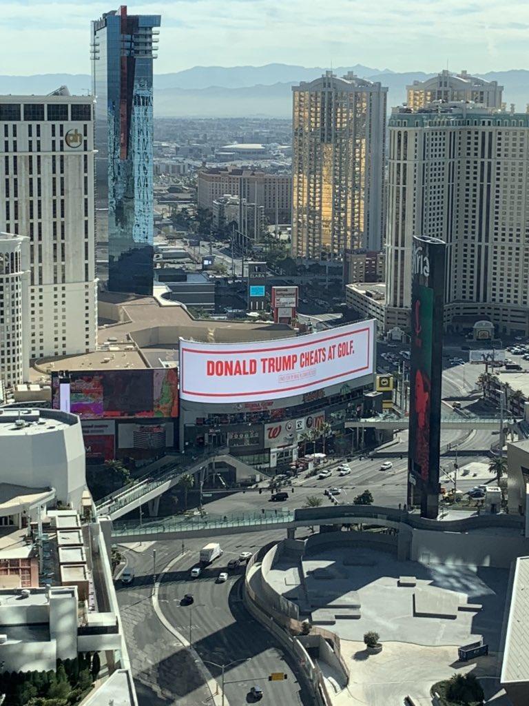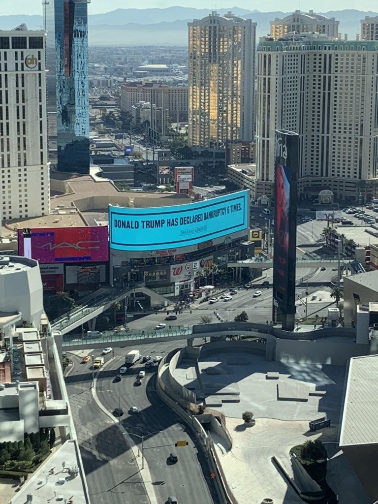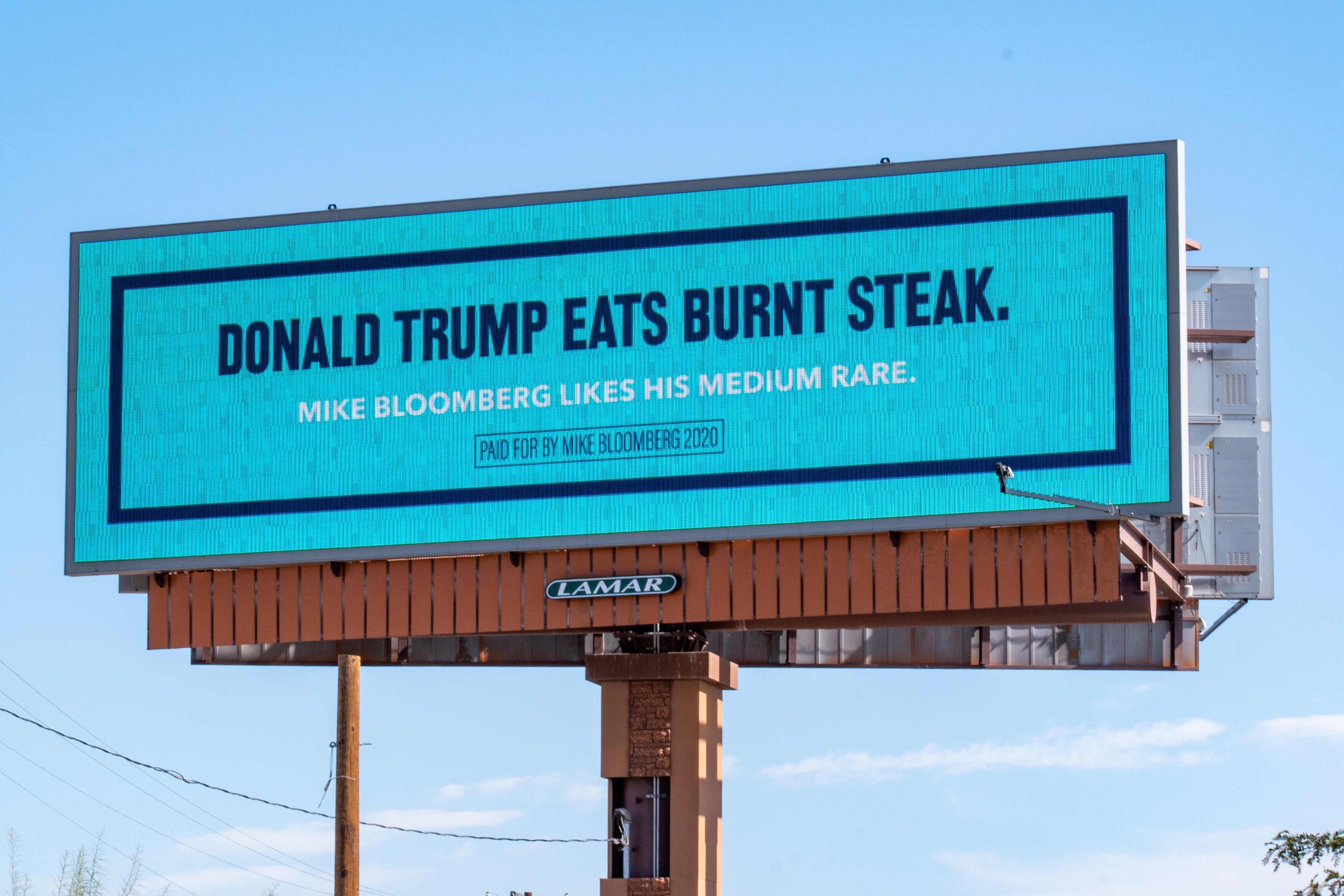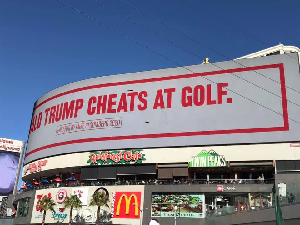 @郑峻:布隆伯格竞选阵营在拉斯维加斯打的巨幅户外广告,全方位嘲讽川建国是Loser。关键是,布隆伯格都不参加内华达初选。在拉斯维加斯打这些广告根本不是为了初选的选票,纯粹是为了提高自己知名度,顺便恶心川建国。钱多就是任性。
