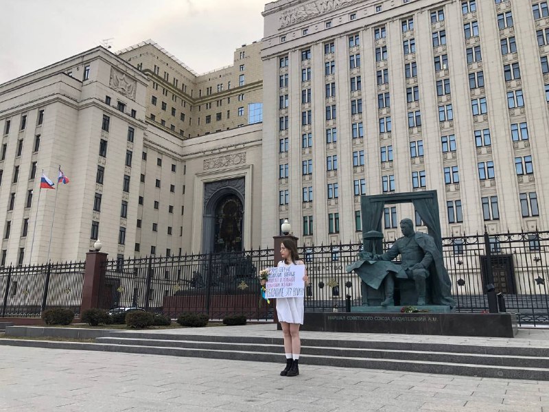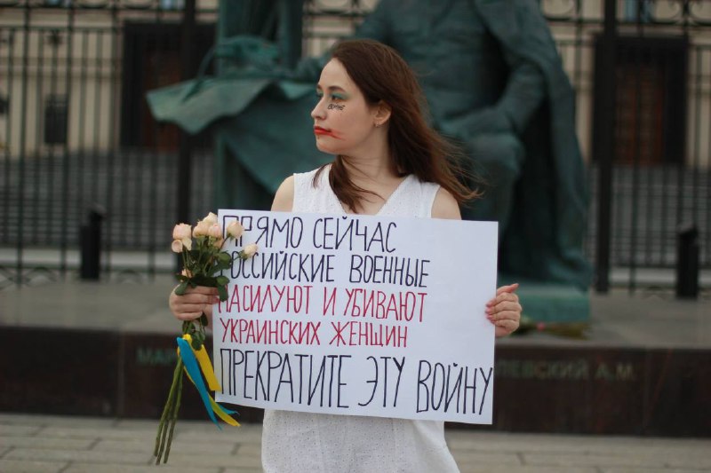 这位俄罗斯女性真勇敢,直接到俄罗斯国防部门前抗议,随后被捕。她举得牌子上写的:现在,俄罗斯军队正在强奸和杀害乌克兰女性。停止这场战争。
