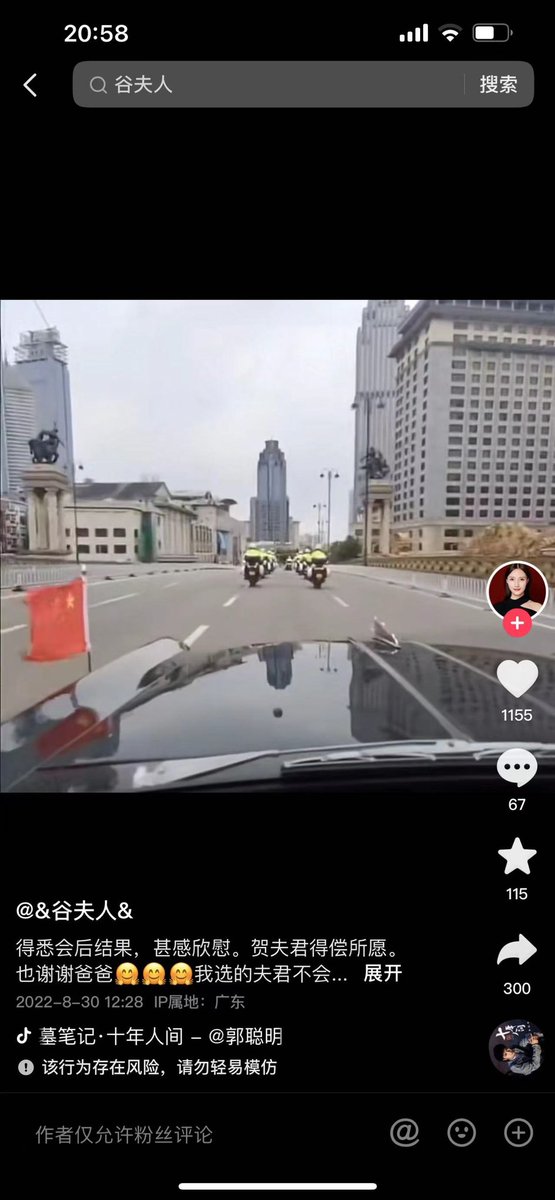 谷夫人成网红了,官居一品夫人,开红旗前面有摩托卫队开道。谁知道这位什么来头?炫耀,炫富成为赵家人的特点?