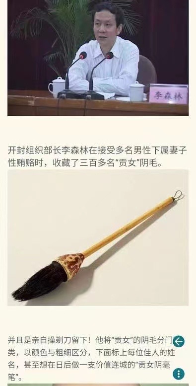 日后提拔?五毛这回攀扯不上“美帝的阴毛”了……【性贿赂】开封组织部长李森林在接受多名男性下属妻子性贿赂时,收藏了三百多名“贡女"阴毛。