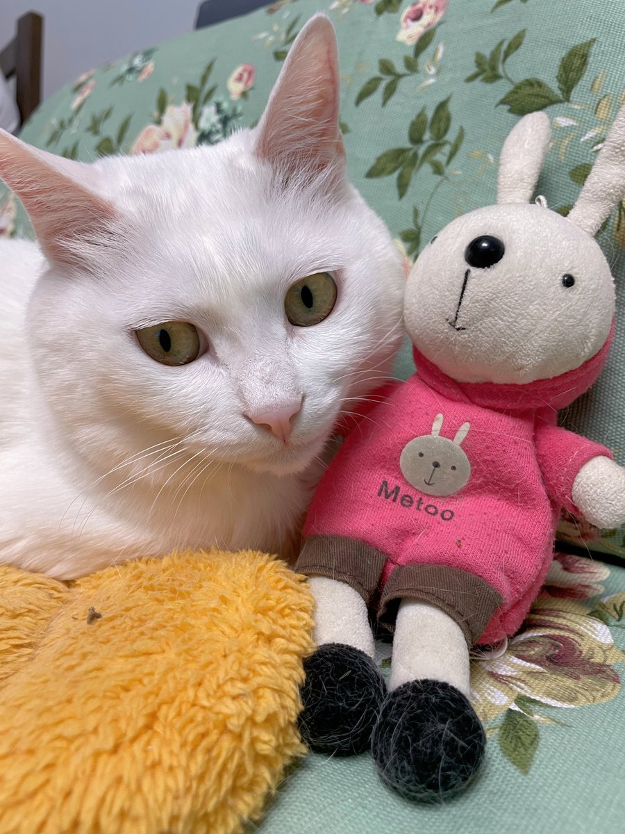 小黄黄在继续养生晒,二白白在继续守着自己的小兔子