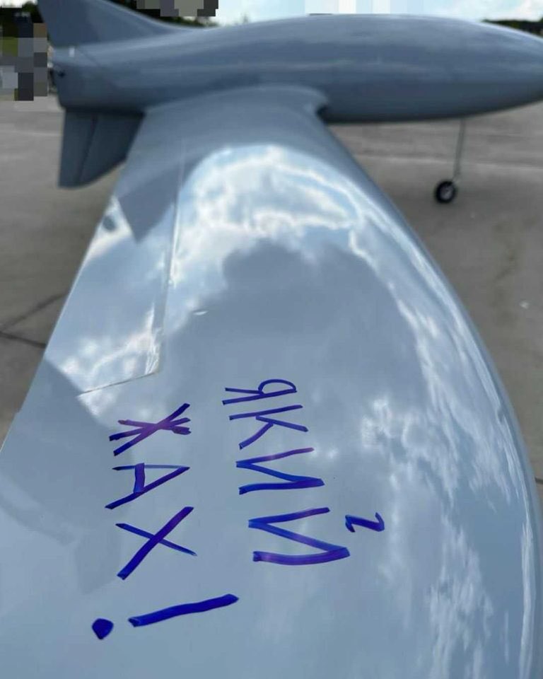 烏克蘭軍1000公里攻擊機正式亮相,正是倒飛的鴨翼 、機體烏克蘭字的發音:(亞克炸)好可怕的意思。