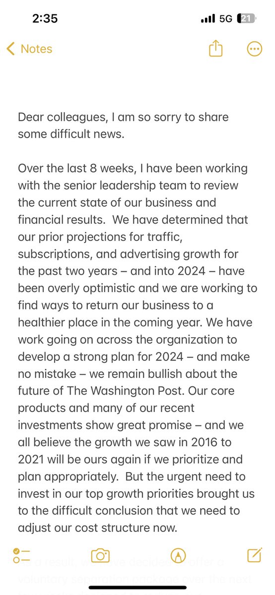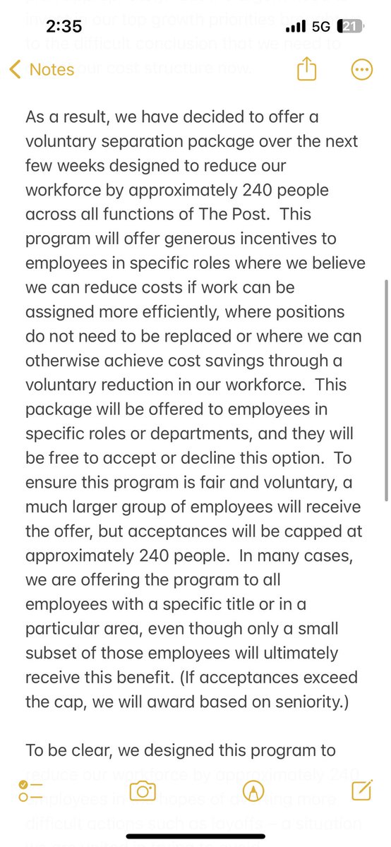 Inbox: Washington Post is reducing its workforce by approximately 240 positions