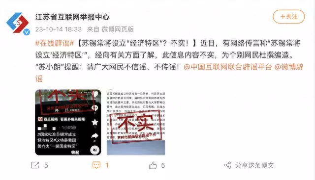 辟谣,还是气球🎈回收?北京商报【苏锡常将设立经济特区?官方回应:不实】…近日,有网络传言称“苏锡常将设立‘经济特区’”,经向有关方面了解,此信息内容不实,为个别网民杜撰编造。