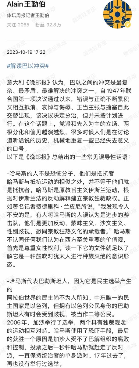 意大利《晚邮报》总结的关于巴以冲突的一些常见误导性话语。