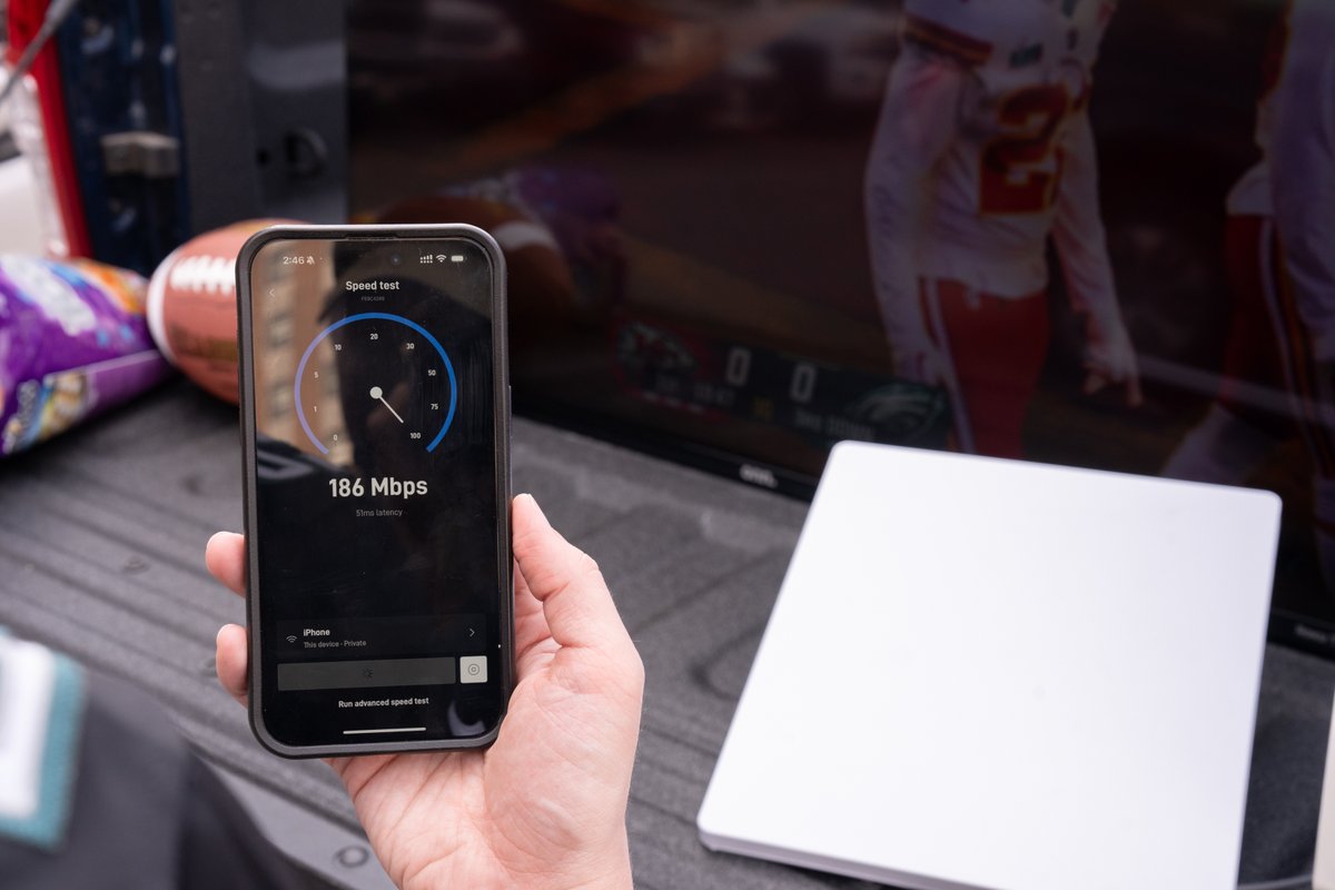 Stay connected with high-speed internet, even while tailgating before the Super Bowl 🛰️🏈Starlink Mini connects within minutes and packs up quickly when it’s time to go →