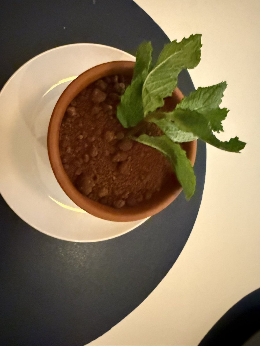 美好周末。意大利饭店,米其林guide,前菜和点心很好,主餐一般,环境不错,服务还行,价格昂贵。图三是提拉米苏,一上桌我愣住了,以为是一盆植物,服务员解释说提拉在意大利语是大地的意思,黑色巧克力作为大地,绿色植物是薄荷,这道点心我打100分,前菜打90分,主餐打75分。