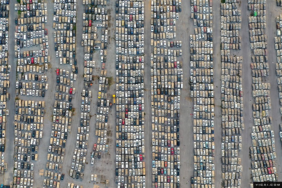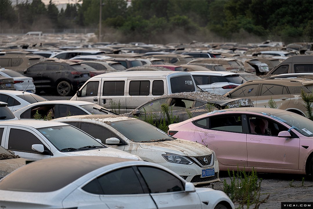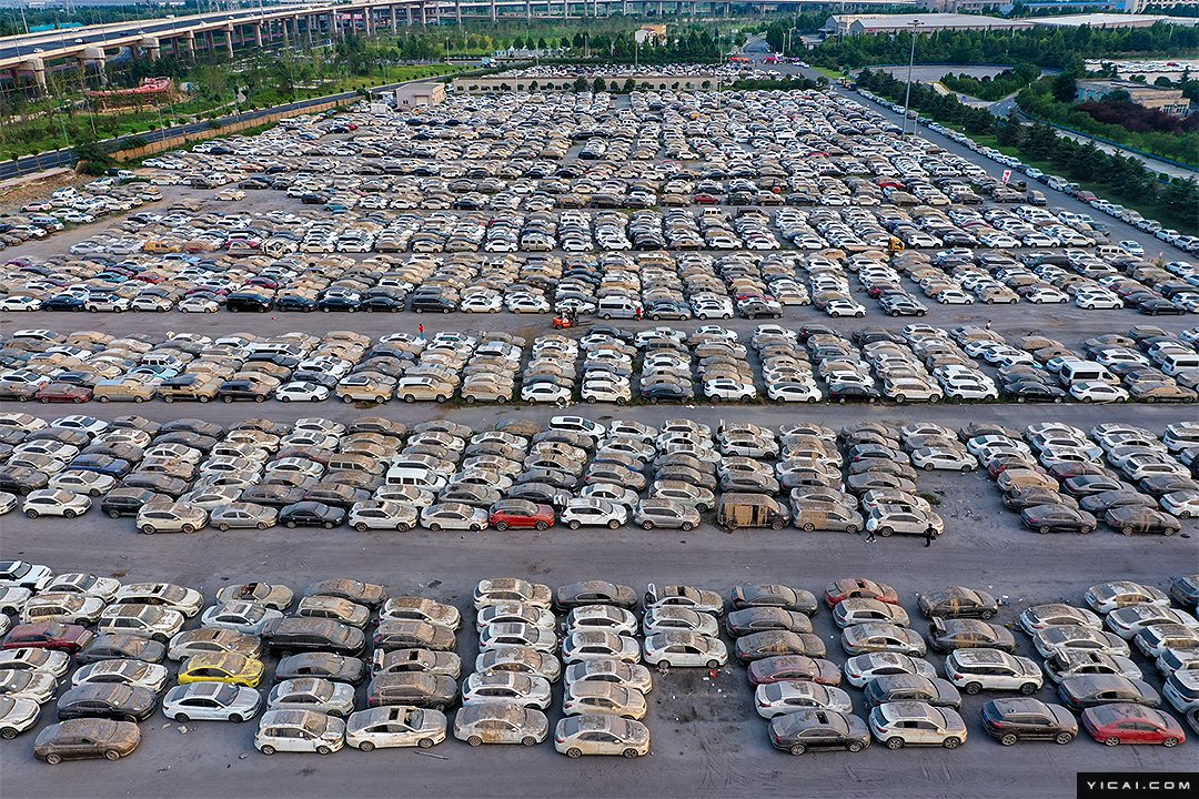 航拍灾后泡水车停车场:7.20郑州特大暴雨致约40万辆车受损---第一财经视觉中国