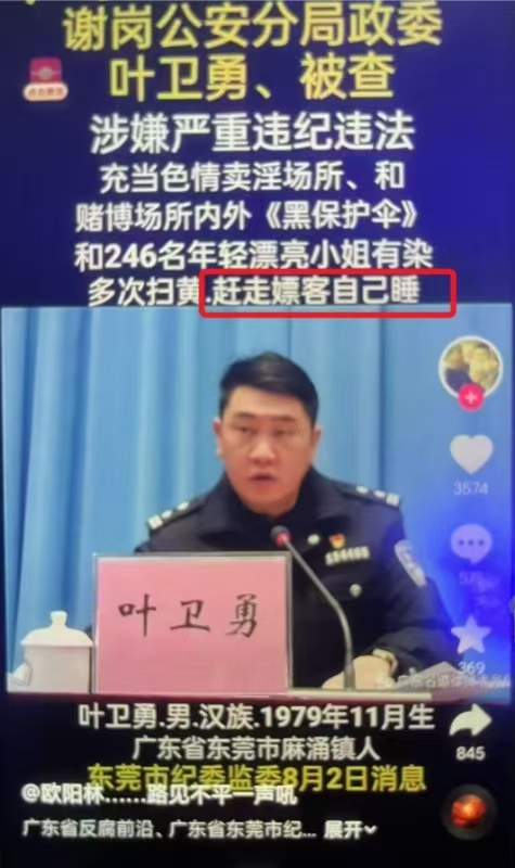 赶走嫖客,自己睡小姐。这就是中共特色的公安局领导