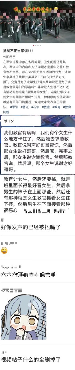 网友投稿:2025年8月4日至8日,泉州晋江市教育局组织的军训中,出现了多项引发争议的问题。卫生条件并非唯一隐患 ---- 部分教官还被指存在不当言行,其中包括涉嫌性骚扰,以及安排带有侮辱性质且缺乏教育意义的环节——例如要求学生手持他人臭袜子跳舞,并美其名曰“前方打仗后方支援”。