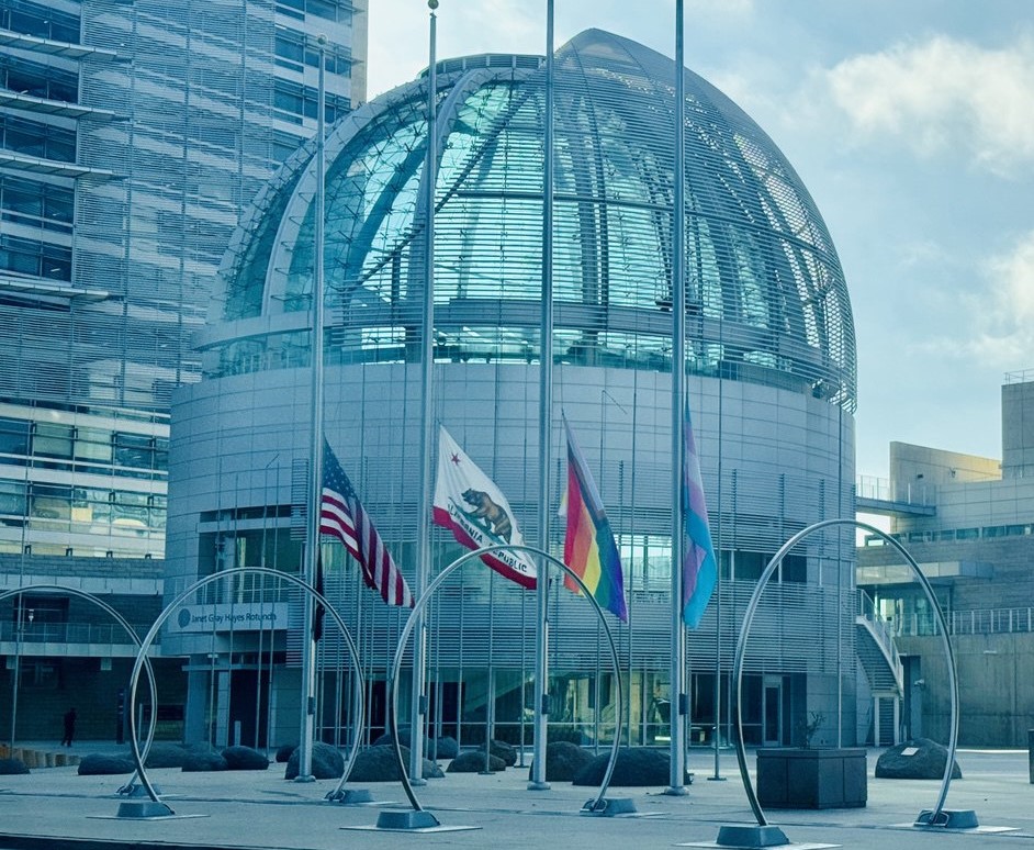 早上路过圣荷西市中心,看到市府大楼前降半旗,应该是为昨天明尼阿波利斯教堂枪击事件致哀。四面旗子分别是美国国旗、加州州旗、彩虹旗和跨性别旗。这里是左派重镇,这样的组合早已司空见惯。巧合的是,这次悲剧的枪手正是一名跨性别者,自认为是女性。#教堂枪击案 #跨性别 #圣荷西