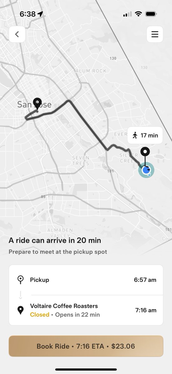 Robotaxi is live (San Jose, CA)$23.06 vs Uber's $36.96 for a ride to a downtown coffee shop.