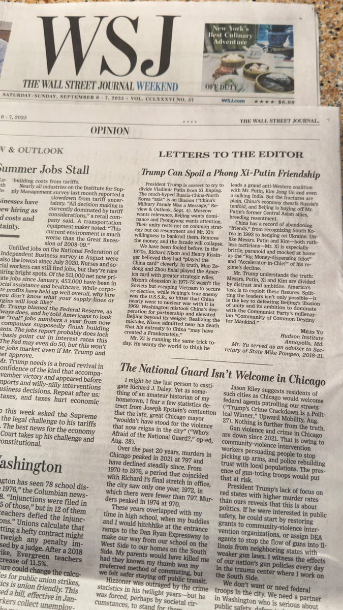 My response in today’s Wall Street Journal to its 9/4 Editorial Board statement:
