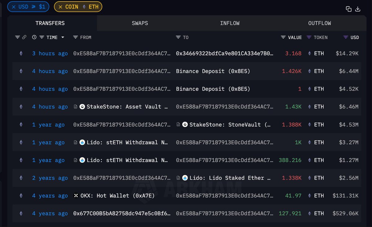 上轮牛市山顶建仓 $ETH 的老哥似乎决定离场了,四年间回撤一度达到 74.4%,上个月才刚回本🥹地址 0xE58...dBA63 曾在 2021.10 - 2022.02 期间以均价 $4141 囤积 1337 枚 ETH,持仓四年后终于在 4 小时前将 1427 枚 ETH 充值进了 #Binance(644 万美元),本次若卖出将获利 50.1 万美元,不容易啊