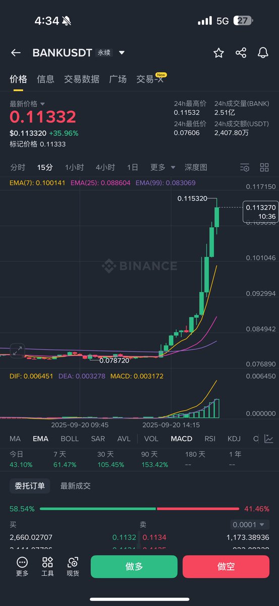 今天市场情绪太好了,Dlyan 奶了一口 $BANK 直接起飞🛫,现在就等 $Wlfi 本币发发力冲破0.24这个天花板,然后一堆小弟小妹们就会开始冲刺。