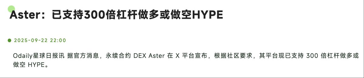 救命Aster「应社区要求」已支持 300 倍杠杆做多或做空 HYPE太朴实无华了吧,我果然还是喜欢看这种直接对轰的商战😌
