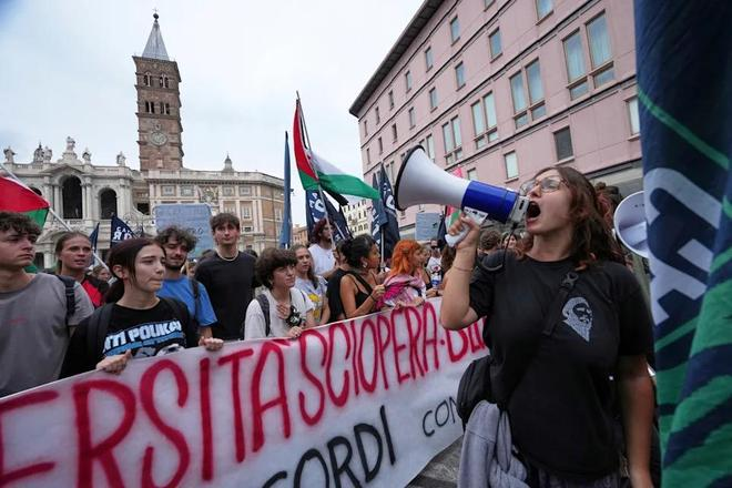9月22日,意大利,因总理梅洛尼明确拒绝承认巴勒斯坦建国,意大利多地爆发大规模抗议活动。