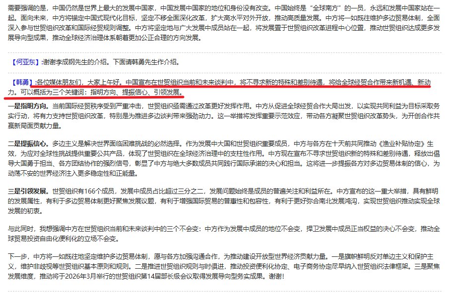 9月24日,中国商务部举行新闻吹风会,聚焦世贸组织特殊和差别待遇问题。商务部发言人何亚东明确表示:中国在世贸组织谈判中将不再寻求新的特殊和差别待遇。