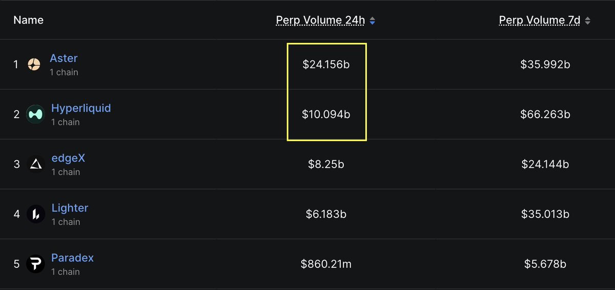 Aster 24 小时永续合约交易量超 240 亿美元,为 Hyperliquid 交易量的 2 倍以上 👾