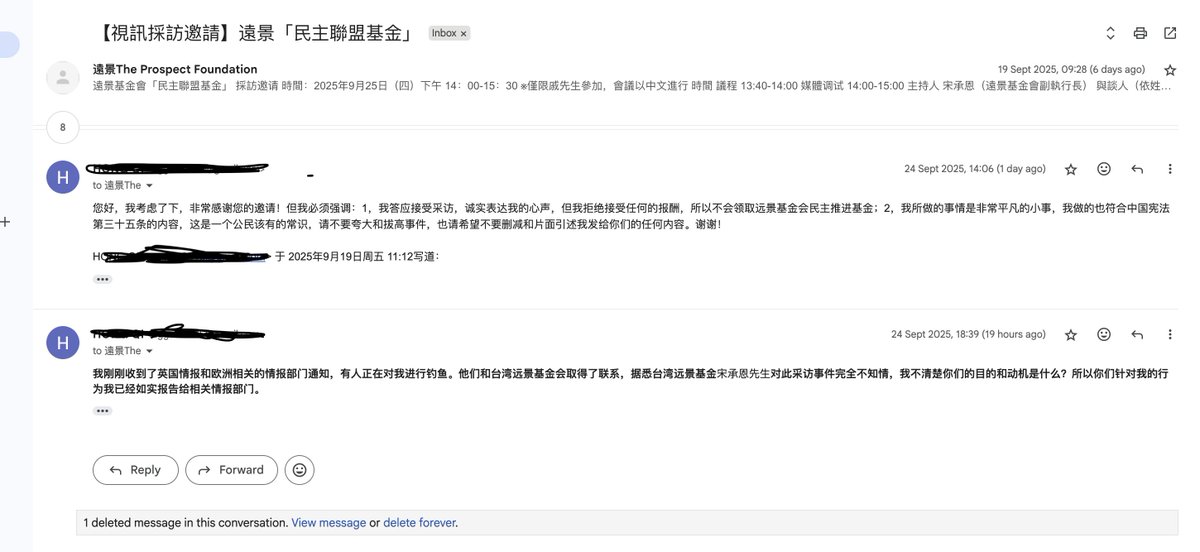 是的,我19号收到的采访邮件,同意了采访要求,报酬当时也没有否认,后来想了想我不能要这笔报酬所以后来发邮件给他们了,但是临近采访前晚上也没有人与联系进一步如何连线事宜。所以找人联系了台湾方面的,结果发现是一场骗局,下面我把采访大纲内容开公开出来了,也希望能够给他们一点启发。