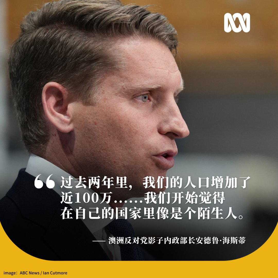 【移民在澳洲再成热门议题】影子内政部长安德鲁·海斯蒂表示,高移民水平让澳洲人感觉自己在本国成了“陌生人”。然而,内政部长托尼·伯克反驳称,移民水平实际上正在下降。虽然联盟党尚未出台正式的移民政策,但其官方立场是必须削减永久和临时移民数量。这一缺乏明确政纲的局面,也加剧了党内的内斗。