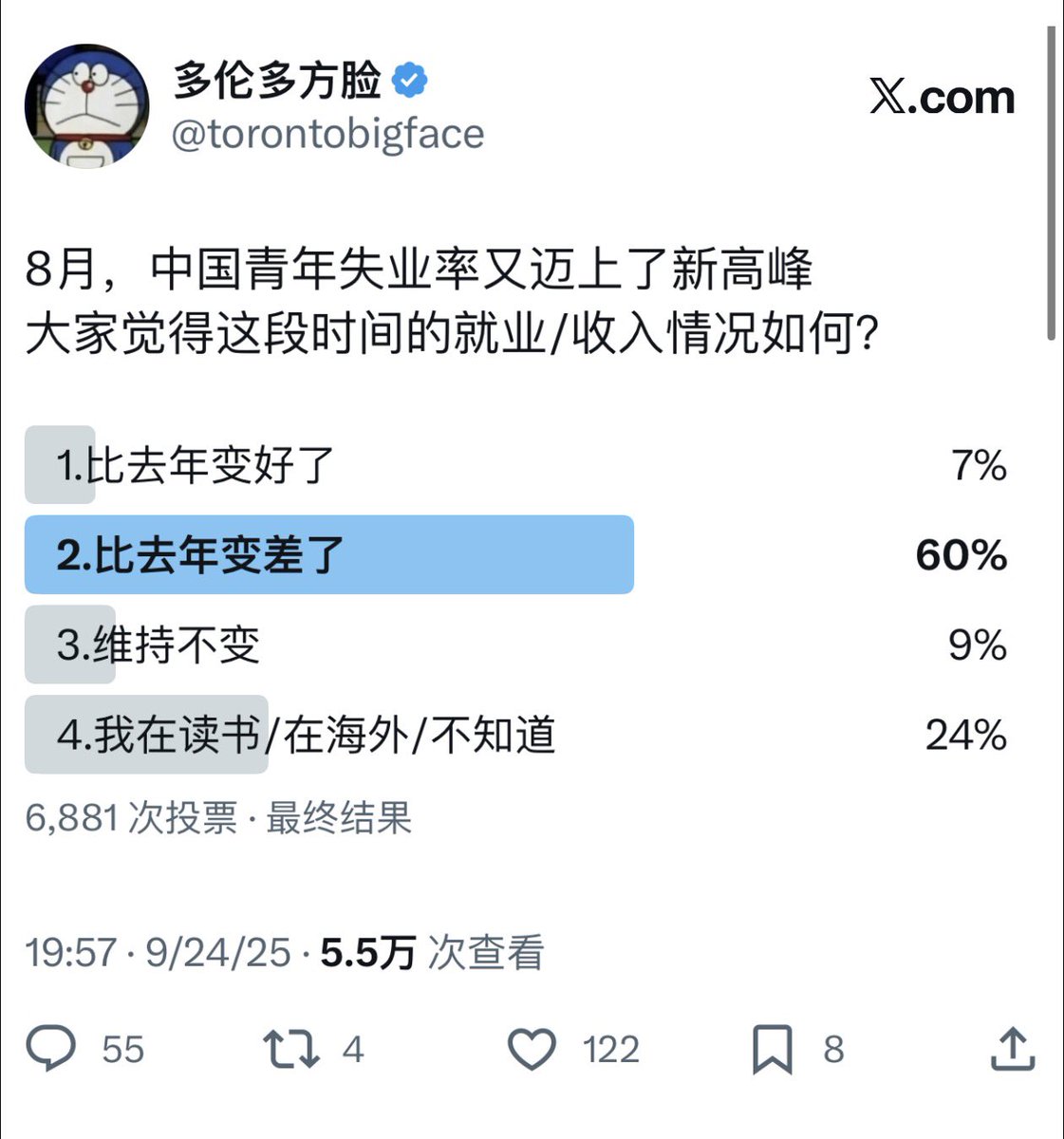 第一张图是去年的调查当时41%的人,觉得收入变低了,15%的人还觉得收入变高了而今年只有7%的人,觉得生活,收入变好了,60%的人觉得更差了
