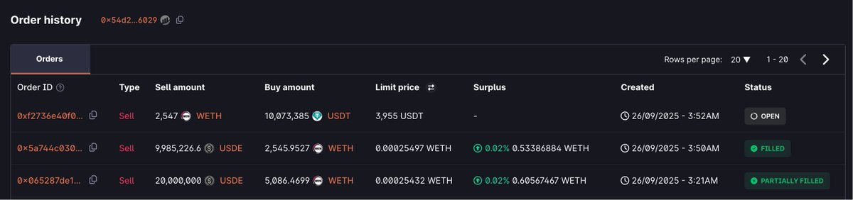 ETH 波段地址 0x54d...e6029 豪掷约 3000 万美金出手操作了⚡️5 小时前他花费 2998.5 万美元以均价 $3928.66 买入 7632 枚 ETH,随后在 Cowswap 挂了 $3,955 的 2,547 $ETH 限价卖单,打算涨 26 刀就先止盈 1000 万刀仓位,也是一点不贪钱包地址本文由 #Gate 大门交易所