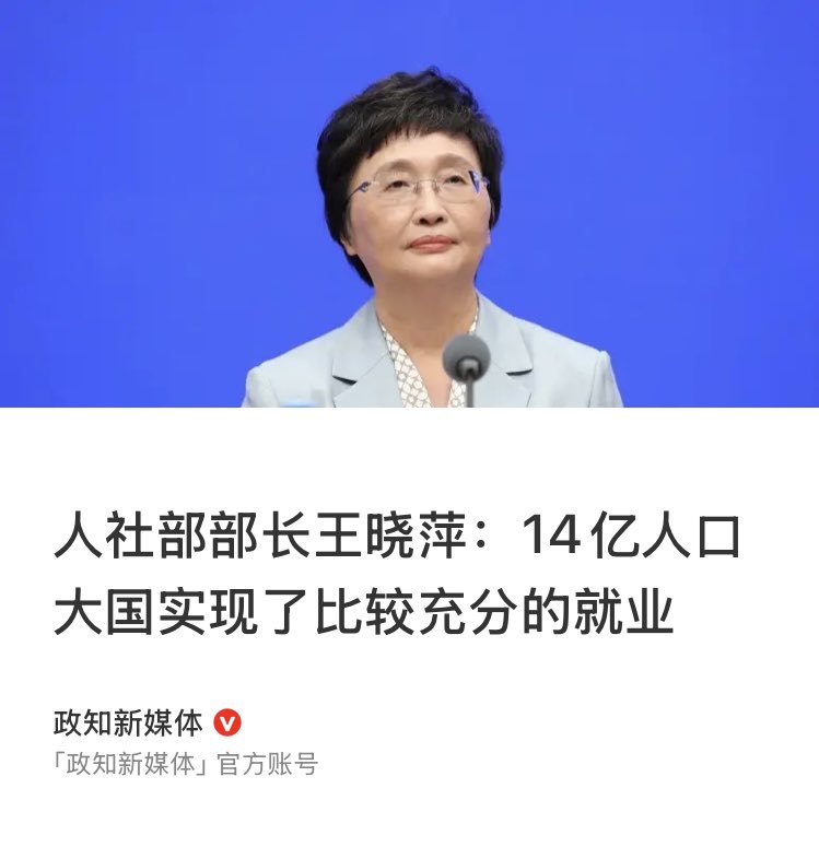 平行世界:中国大陆随处可见经济衰退和失业问题,人社部长反而说截至8月底,城镇新增就业累计达到5921万人,超额完成5500万人的目标任务。有一种上报黄海海战大捷的美感~