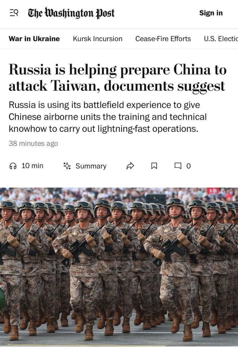 俄罗斯正在帮助中国,为侵略台湾做准备据《华盛顿邮报》援引泄露文件报道,根据一份价值5.8亿美元的合同,莫斯科同意为中国训练一个两栖营,并为可能对台湾的侵略提供实战经验。训练将在俄罗斯和中国进行。