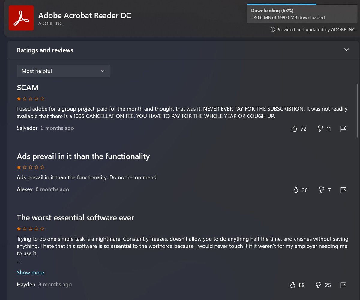 Adobe是如何把自己作死的?作为一个pdf阅读软件不仅奇卡无比,填pdf还要订阅高级功能,取消订阅要罚款100刀这家公司真的要完蛋?赶快做空。。。