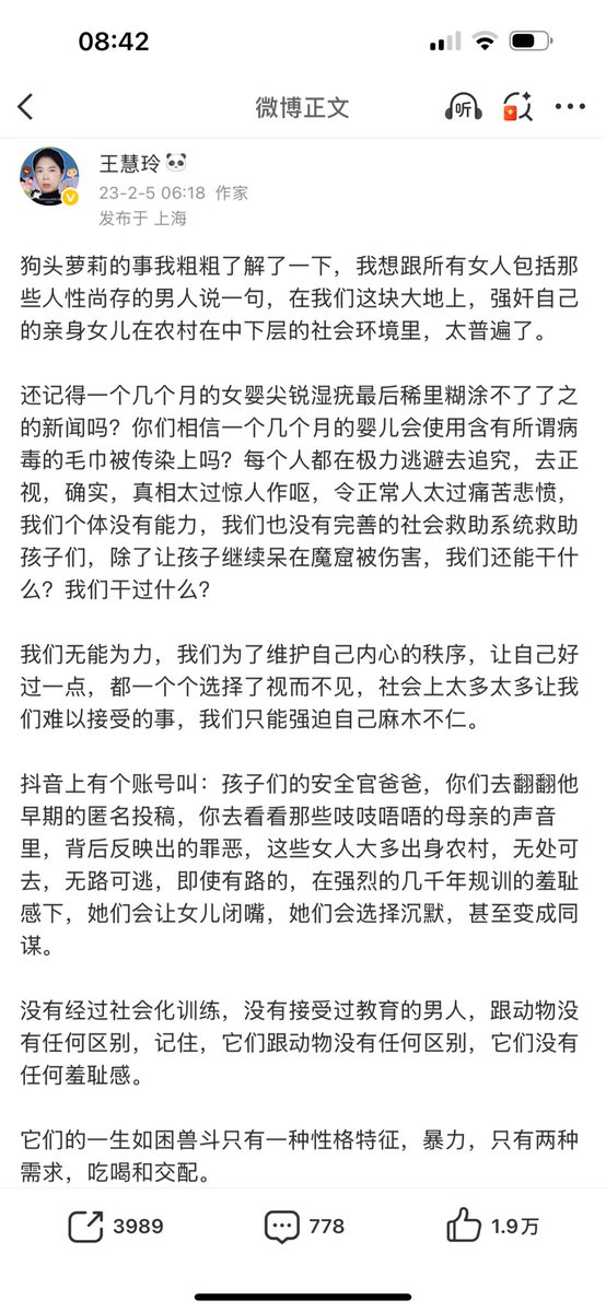 21到24年微博上发的一些关于孩子被亲生父亲,爷爷,被家里的其他男性亲戚性侵相关的文章,有兴趣的可以看一下。