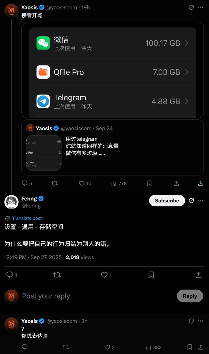 世界上就有一种人想存着所有的聊天记录方便回溯人生过往然后这就成为归结为别人的错了?怎么这种还有人洗....不懂所以把耳朵捂起来假装自己的产品最牛逼你们使用者用的体位不对姿势不对用户傻逼我最牛逼这不又是另外一个西贝吗😅