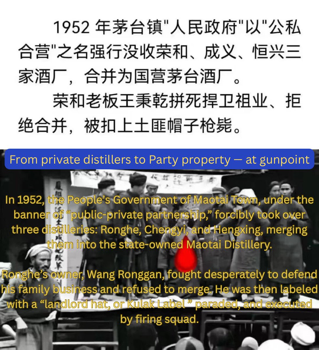 China’s famous Maotai liquor was born in blood. In 1952, the CCP seized three private distilleries. One owner resisted — he was branded a ‘landlord’ and executed. From firing squads to luxury bottles, communism always drinks first.#TGTM #CommunismHistory #Maotai #ColdWar2