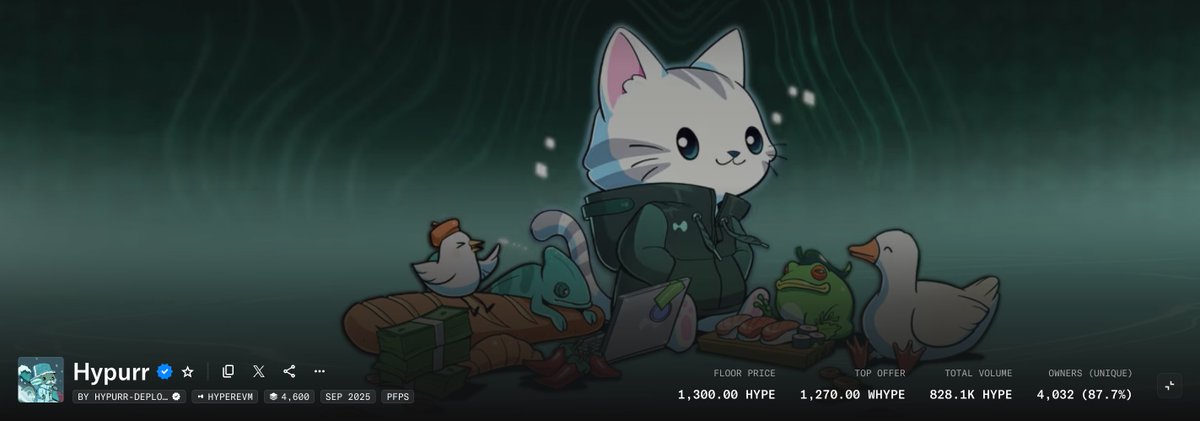 24 年底的 Hyperliquid Genesis 活动无人问津 今天的 Hypurr NFT 地板价 1315 HYPE(6.2 万美金)🥹 ▶︎ 24 小时交易量 82.1 万枚 HYPE,约 3848 万美元 ▶︎ 编号 #21 以当前最高价 9999 $HYPE 成交,约 46.6 万美元 ▶︎ 地址 0xb71...3bc5c 为个人 TOP1 持有者,拥有 13 个 NFT Opensea 传送门:https://t.co/lOFNslnH2m