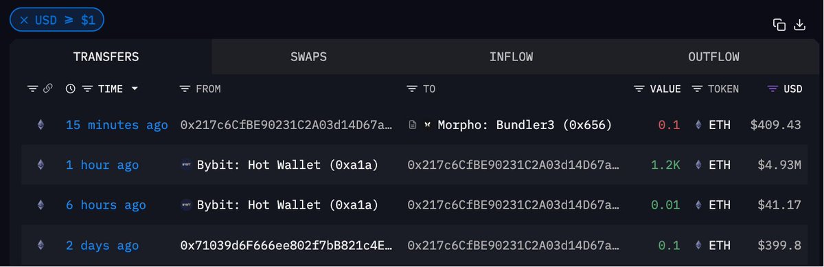 那头巨鲸在 20 倍 25 倍做空 $ETH ,这头的巨鲸却选择建仓新地址 0x217...BF895 一小时前从 #Bybit 中提出 1200 ETH,价值 493 万美元,提出价格 $4104;15 分钟前他向 Morpho 充值了 0.1 ETH 进行小额测试,或许是想存入进行质押等操作钱包地址本文由 #Gate 大门交易所