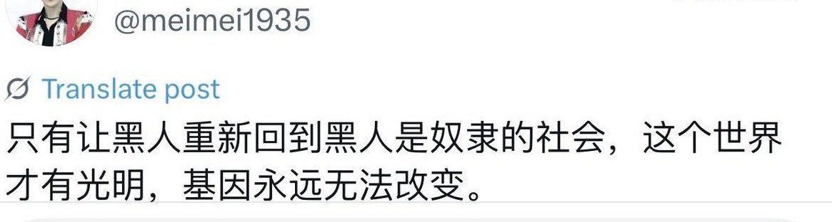同理,白人需要回到欧洲吗?把美洲留给印第安人😄她从民运支持者变成了种族主义者。