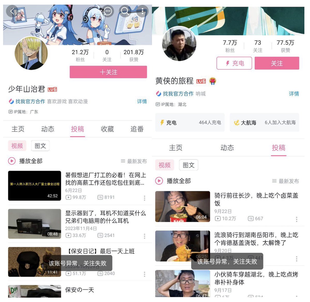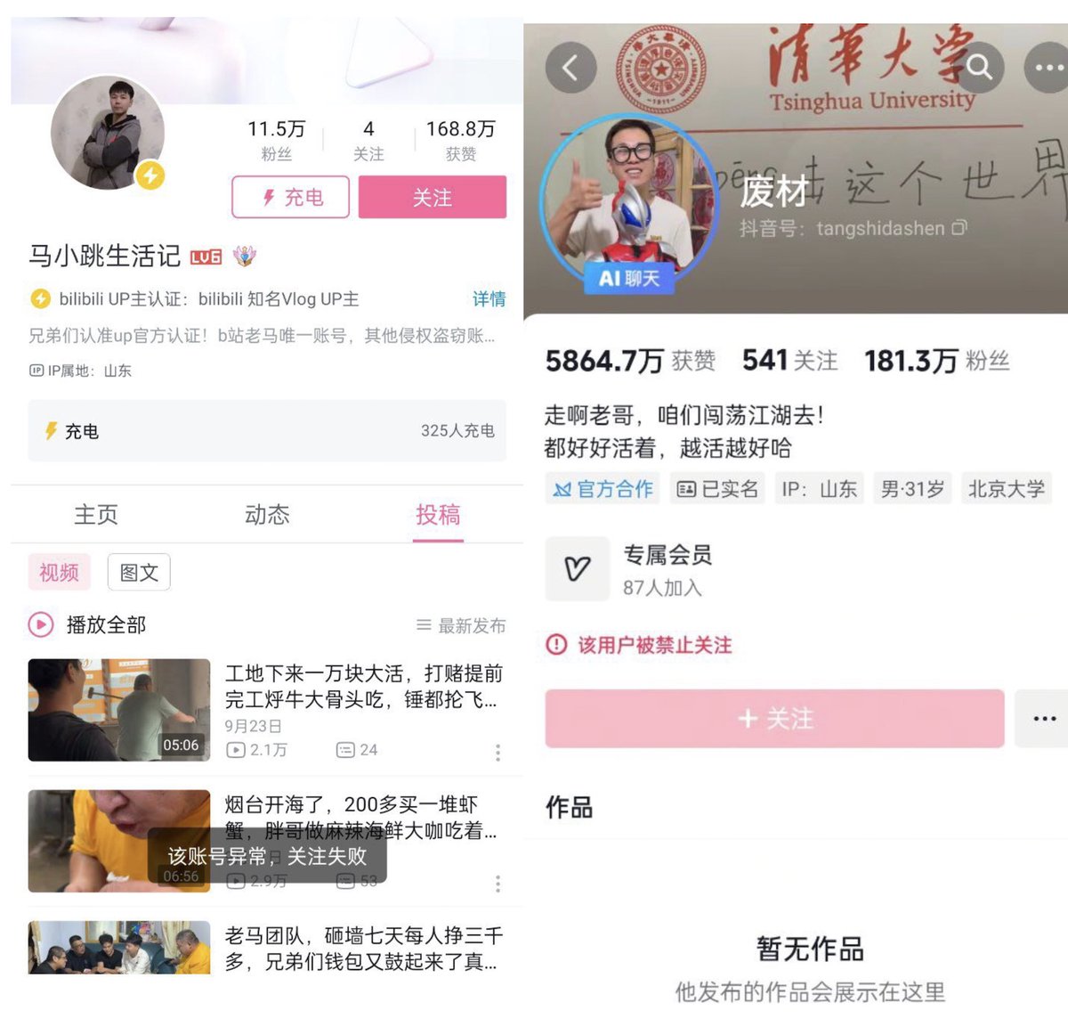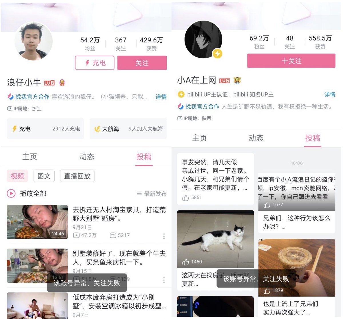 截止9月29日,越来越多的“躺平”博主都显示账号异常,被禁止关注,或者清空了主页视频。