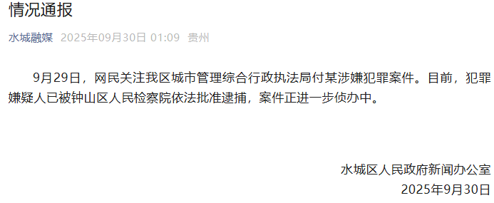 9月30日,贵州一副局长被指性侵继女,水城区人民政府发文凌晨官方通报:已逮捕。