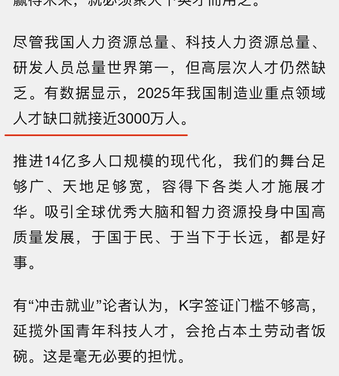 人民日报锐评K签说中国目前制造业还有3000万人才缺口那想必,中国青年就业率很好吧😆😆😆