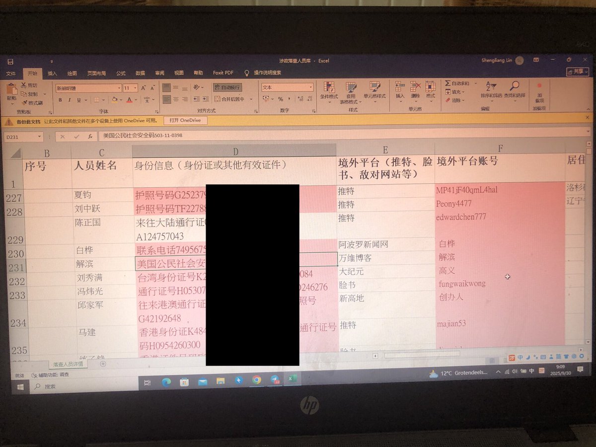 中共內部洩露的涉政(境外平台)人員名單,經中國人權資料庫團隊技術人員的整理和分析,抽機核查都是真實資料,甚至個別人士的別國護照號碼,社會保險號碼和地址都有。發現其中還有外國人在中國上外網的記錄也被採集。