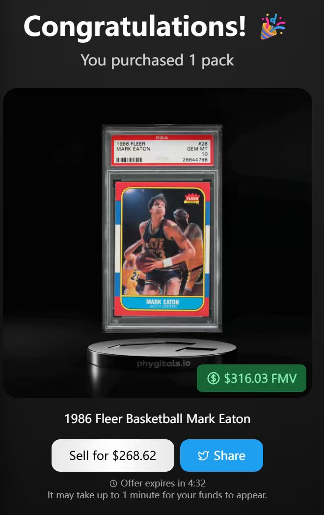 教程点击左边PACKS,然后选择Pokémon,连接钱包,钱包里有SOL和USDC,就可以抽。25U一包,抽完会显示市场价多少,然后你可以打个9折卖回去,根据卡不同是11-15U之间,特别稀有的就赚。比如图上这个是10倍收益。交易额主要用于撸币积分