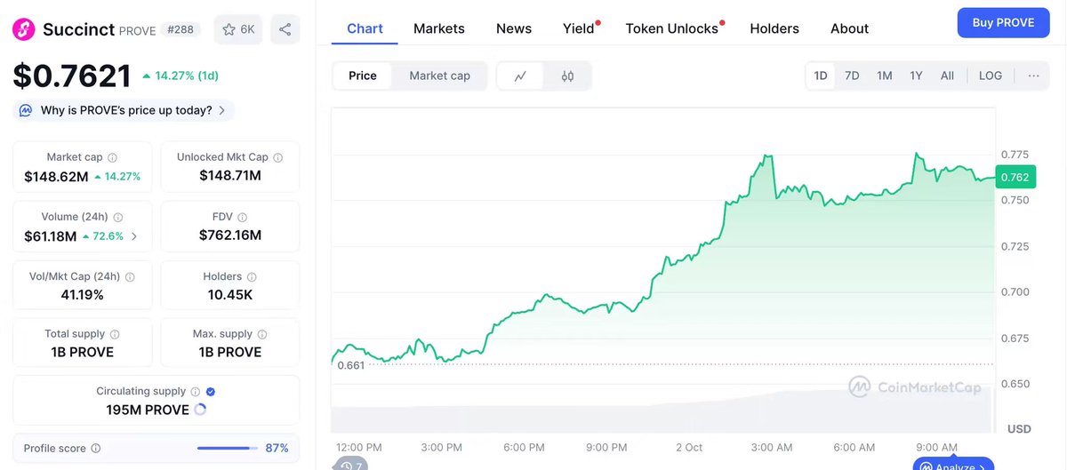 时隔 10 天 $BTC 重回 11.8w,想搞事的项目方抓紧时机😌 zk 板块的 $ZEC 以 71% 拿下了币安涨幅榜 TOP1,而同赛道的 $PROVE 或许也受此影响 24 小时涨幅 14%($0.6 > $0.8),毕竟热门代币拉飞后寻找有补涨潜力的同赛道代币也是常规操作了 再涨一涨,就到老黑(Arthur Hayes) 之前收到项目方代币时候的价格了哈哈哈