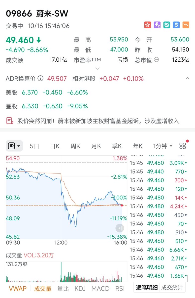 蔚来被新加坡主权财富基金起诉,股价闪崩据多家媒体报道,新加坡政府投资公司 (GIC) 已在美国对中国电动汽车制造商蔚来汽车及其两名高管提起诉讼,指控其涉嫌证券欺诈。