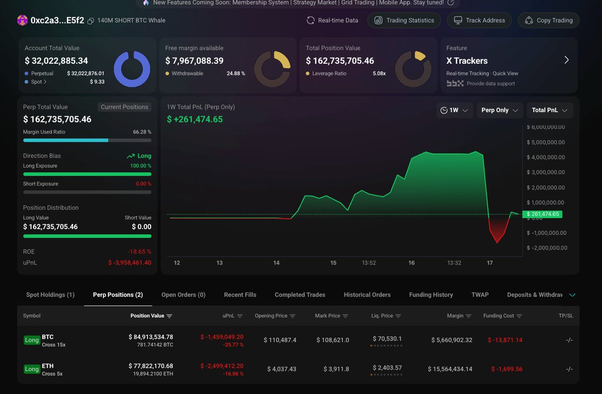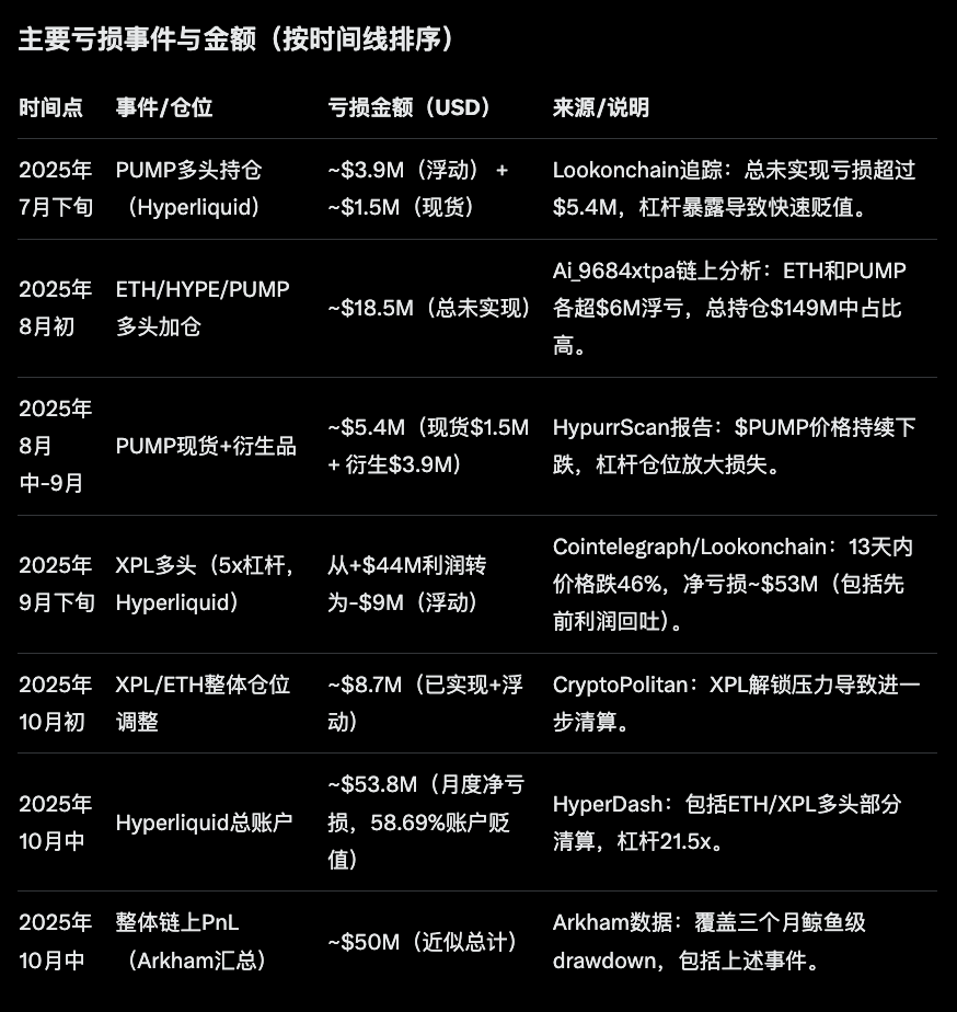 好家伙,基于可用链上数据和分析报告(如Arkham、HyperDash和Lookonchain的追踪),Machi Big Brother的链上地址(主要涉及ETH、PUMP、XPL和Hyperliquid等平台的杠杆交易仓位)在过去三个月(2025年7月17日至10月17日)内