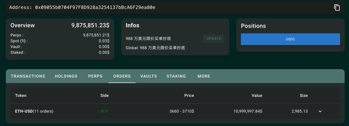 ETH 跌破 $3900,想着此前挂限价买单的老哥快接到货了 打开一看,嘿,今天凌晨下跌时他重新调整了价格范围,最新的 ETH 抄底预期为 [$3660 - $3710],该点位计划买入 1100 万刀,比原有挂单价格又低了 100 刀…🥹 一股风雨欲来的味道,钱包地址 https://t.co/HsamLB6KRE 本文由 #Gate 大门交易所 | @Gate_zh 赞助