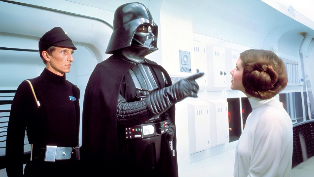 Could you write a humorous caption for Darth Vader?What does he say to her?