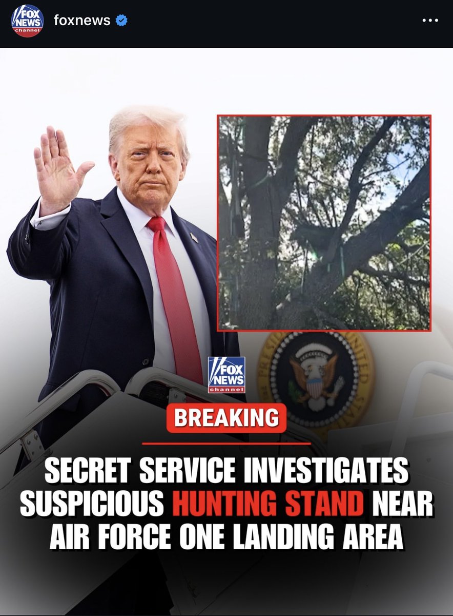 “Hunting Stand” - for all the Whitetail on Southern BLVD, located across the street from Palm Beach International Airport, in the median of a major highway… 200yds away from the Air Force One stairs. Ps Secret Service did a GREAT job fining this… Hunting Stand.