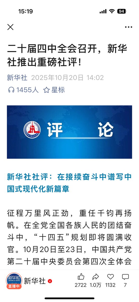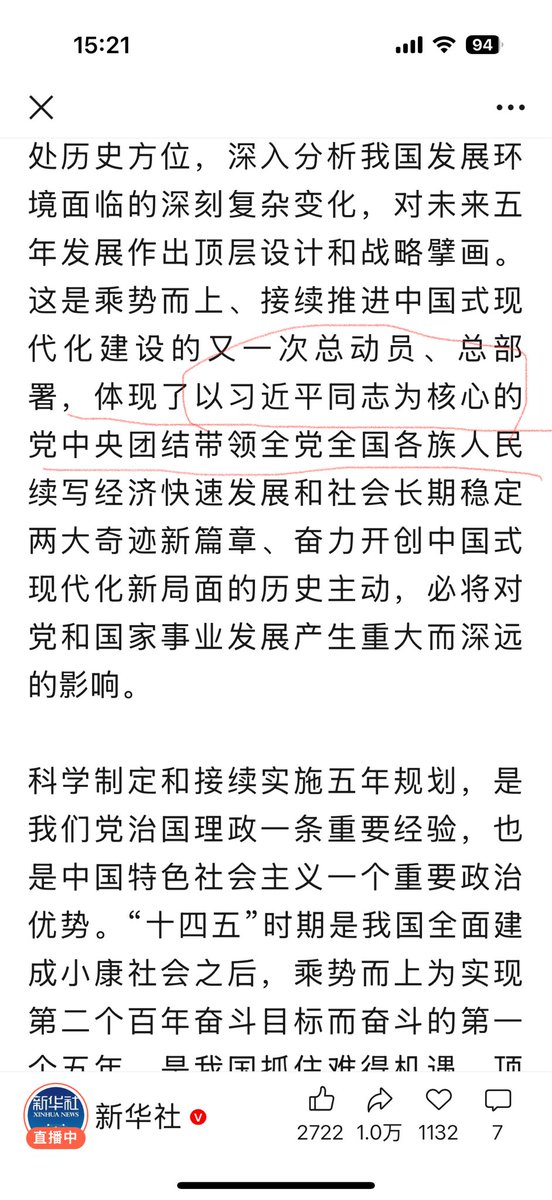 北京时间14:02分,四中全会的新华社社论出来了,我从来看不懂中国官宣那低劣而富深意的文字,聪敏的大家帮着分析吧: