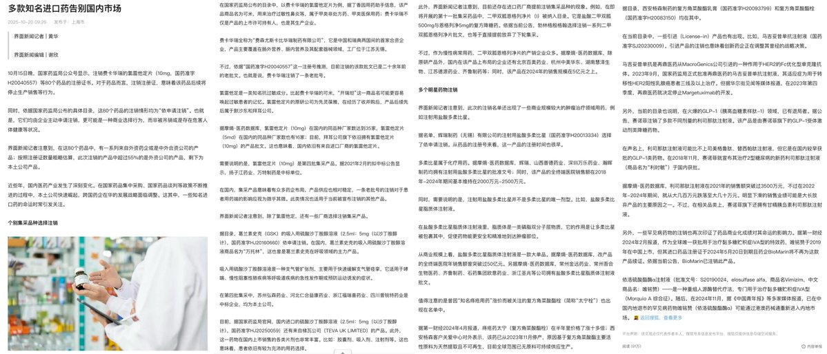 多款知名进口药将退出国内市场,涉抗过敏、降糖及肿瘤药