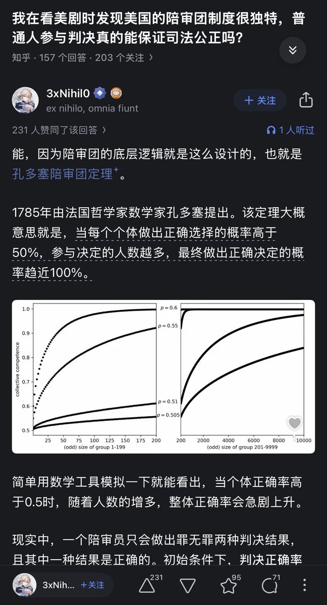 这种统计学知识超纲了所以咱们中国人只会相信领导的智慧,最好是定于一尊,最高皇帝而不是选票,民调,选举甚至连陪审团都要质疑咱们中国人已经非常清楚的坚信一件事那就是咱们老百姓都没脑子容易被境外邪恶势力洗脑没有基本的逻辑、决策、判断能力对自己人格、人性的彻底否定